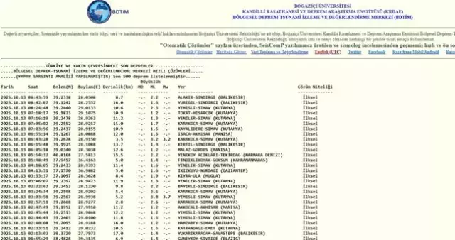 13 EKİM 2025 DEPREM OLDU MU?